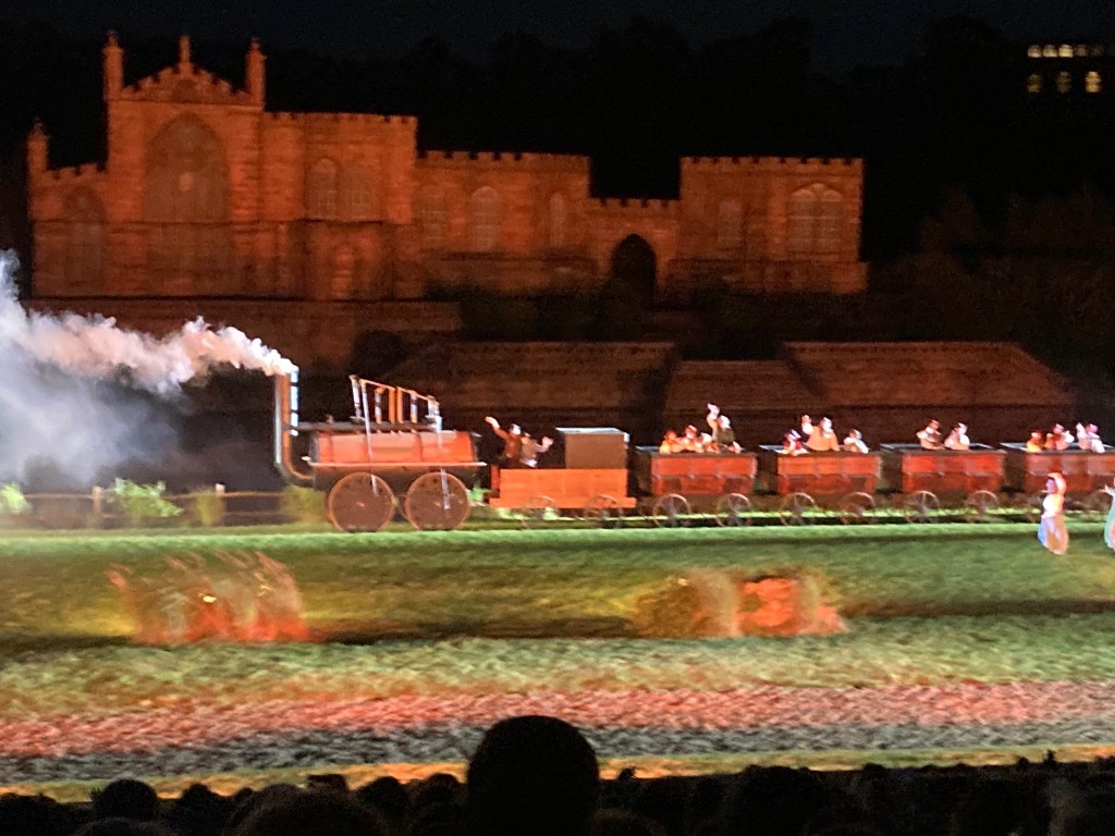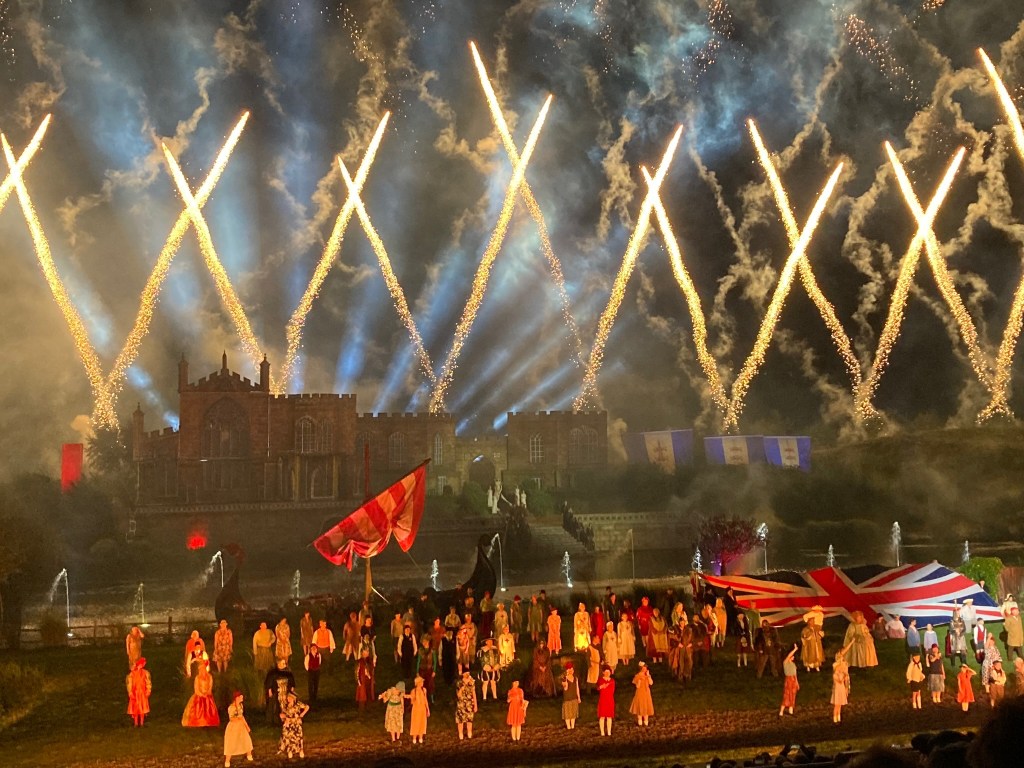 What then follows is a magnificent tour through English History from the arrival of the Romans, Boudicca and on through to the rising up from the lake, of a “Viking Longship” breathing fire!! Seamlessly and without a break, the pageant continues, Stephensons Rocket makes a great entrance “stage right” and through the centuries, countless costume changes, the show does not miss a beat.