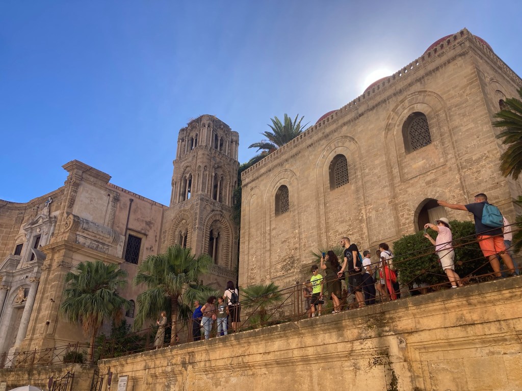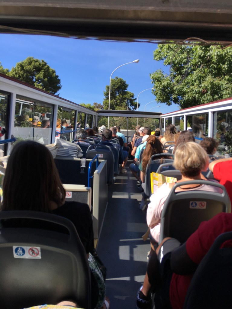The Duomo is impressive and one of the few tourist destinations that we saw, that really was looking great. The pics below hopefully show it off well. It was a hot day in Palermo – low 30sC, and we decided that to get around in a bit more comfort we should take a “hop on hop off” bus. With its predetermined circular route – as we were told – we could see a bit of the city in comfort and from height in the double decker. All went well for about 20 mins and we reached the end of a circuit and then waited for the bus to start again .So we and all the passengers got hotter and hotter, as we waited & waited in the sun.