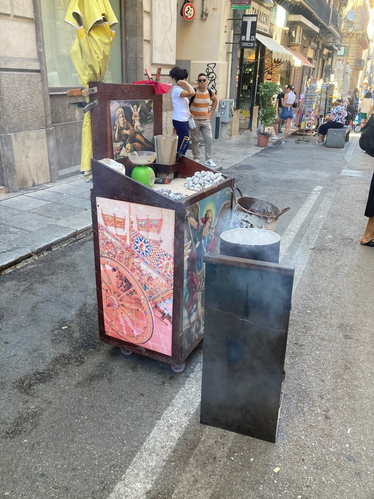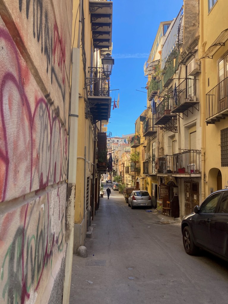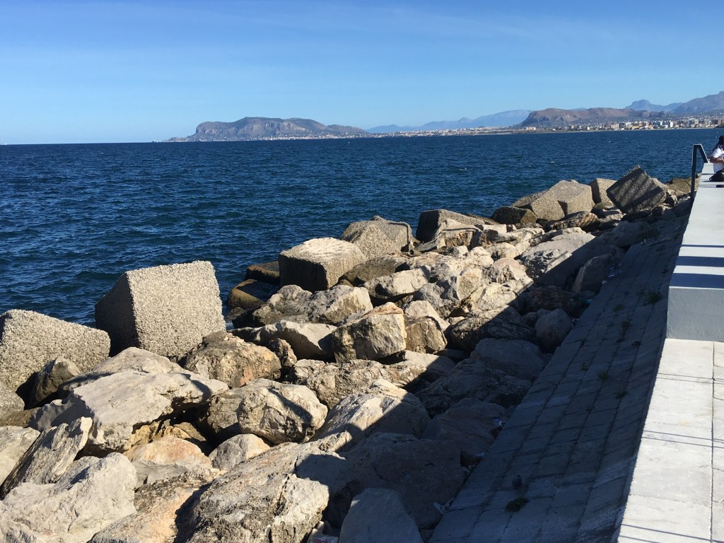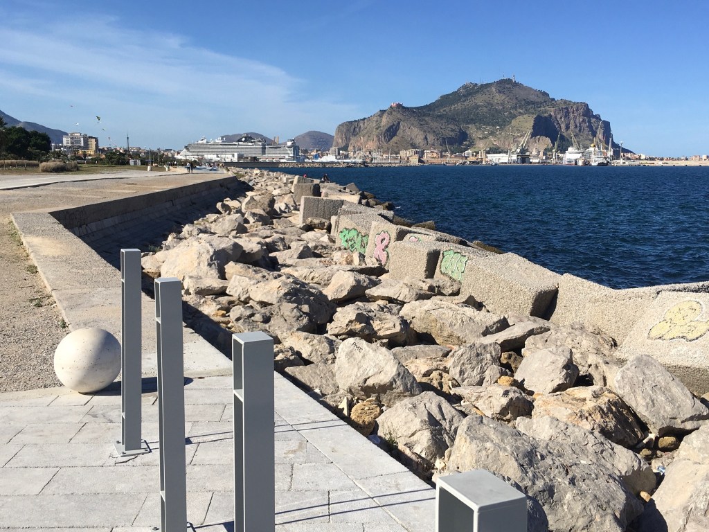 Trenitalia to Palermo. With only 4 nights in Mazzaforno/Cefalu, we decided that on one day we needed to check out Palermo and took the Trenitalia train – 50 minutes and Eu 7 tickets each way. Parking at Cefalu railway station – thank you Easypay – a modern but busy train arrived on time, we piled on board and eventually found two seats with a small group of excellent English speaking music students.We enjoyed an excellent journey chatting to them- their great English to our rubbish Italian – grazze mille!!.