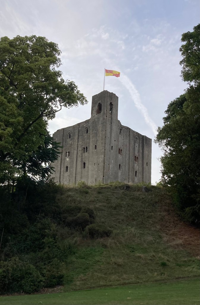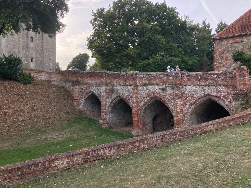 The Norman Castle – Keep , Moat (currently dry)& Ramparts at Hedingham , were built about 1140 by the then first Earl of Oxford, a Norman nobleman, on lands bestowed on him by William the Conqueror, (1066 and all that), to the victor the spoils! A Georgian house was added that is now lived in by his descendants, the whole premises are now a wedding or event venue including the setting for summertime Shakespearean plays.