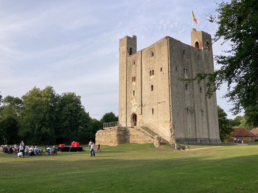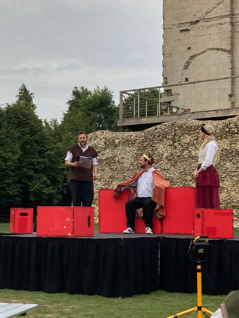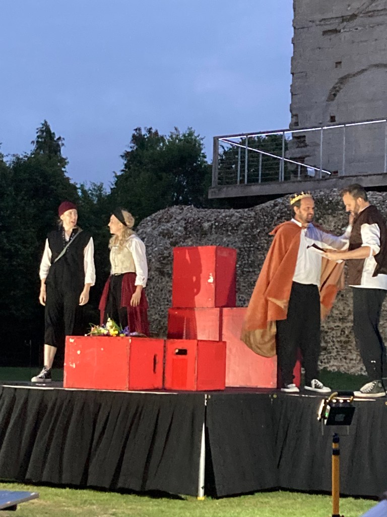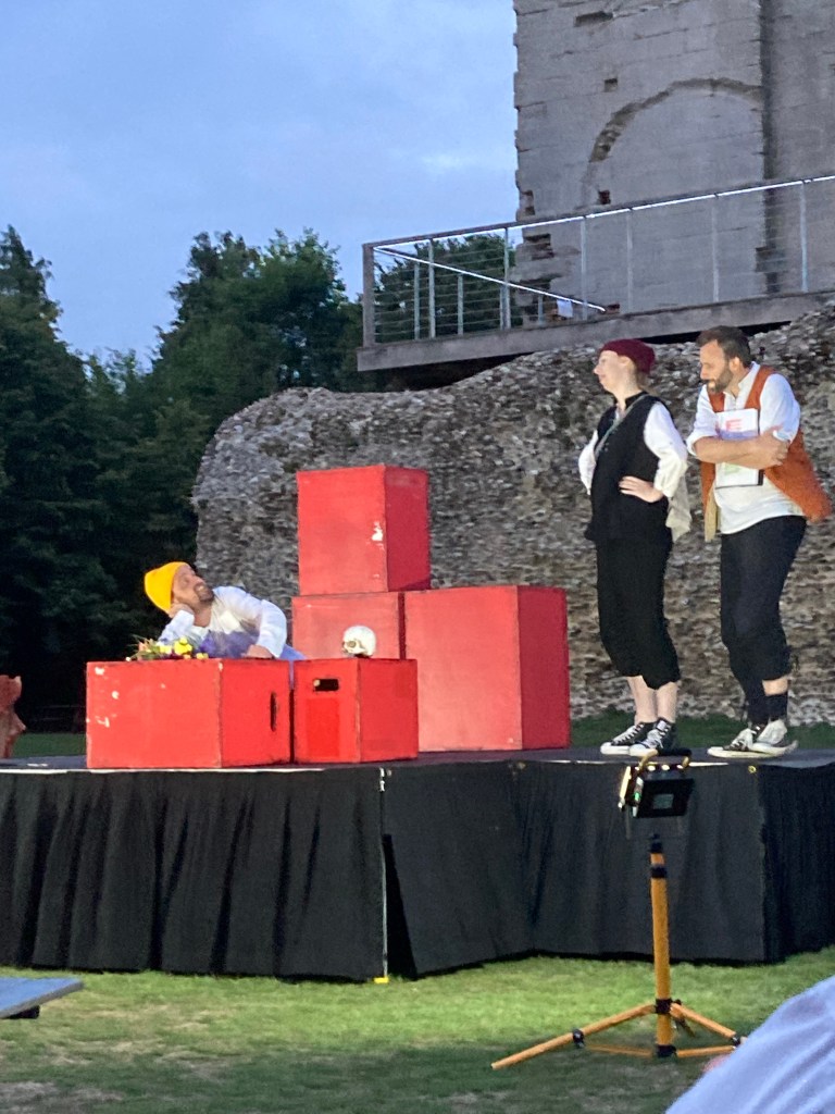 And onto the play!! We had never seen Hamlet performed, but were pretty familiar with the storyline. This outdoor performance with the Norman Castle Keep as a backdrop, was definetly non traditional. There were only 4 performers for the many roles, one of whom was the “Producer” who introduced himself at the start, saying that he was “standing in” for an actor who was sick. The Producer apologised that he would be “reading his lines”, which he did with great theatrical verve and comedy.